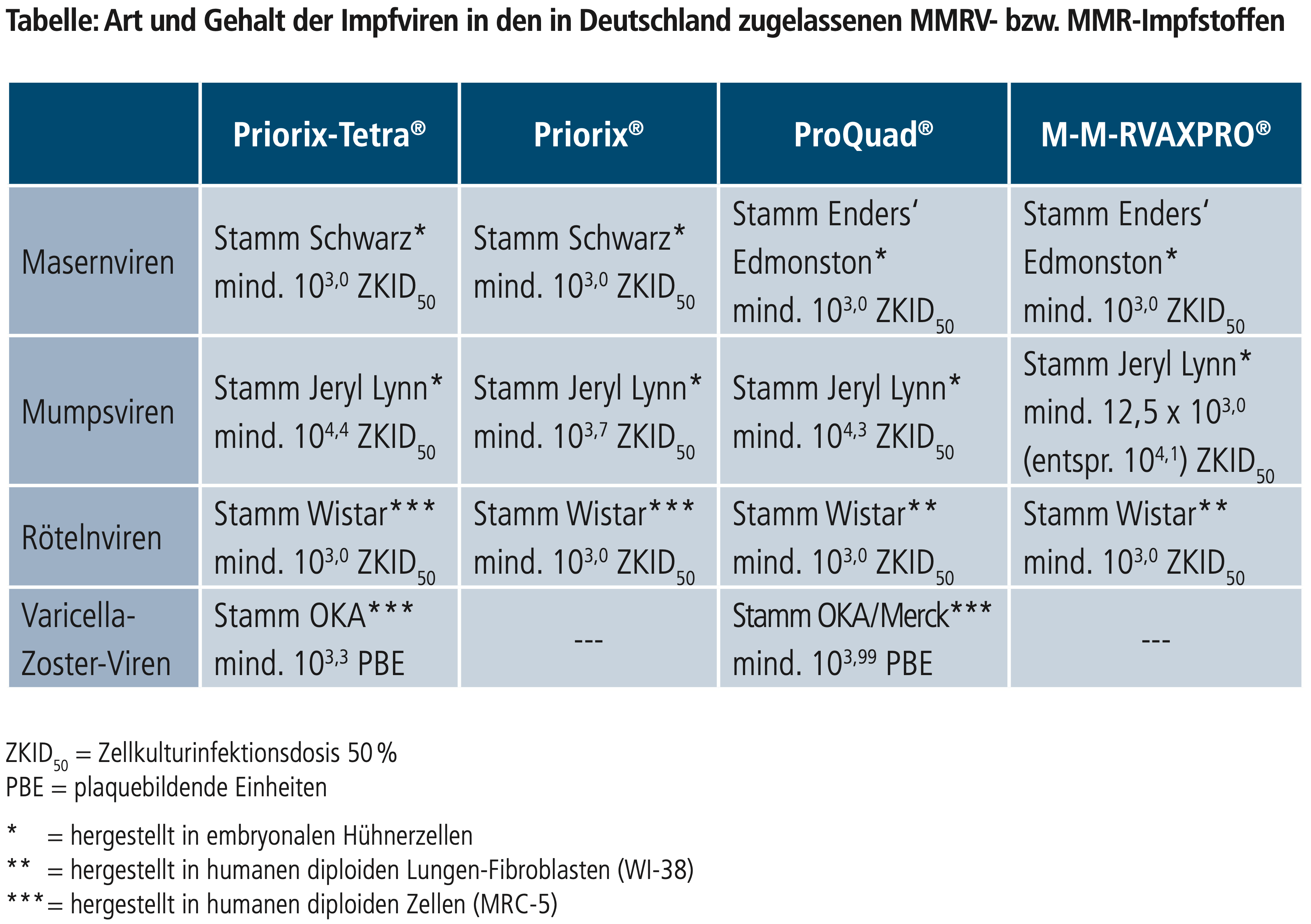 Hier eine Übersicht der in Deutschland verwendeten Masern-haltigen Impfstoffe (PEI 2011)